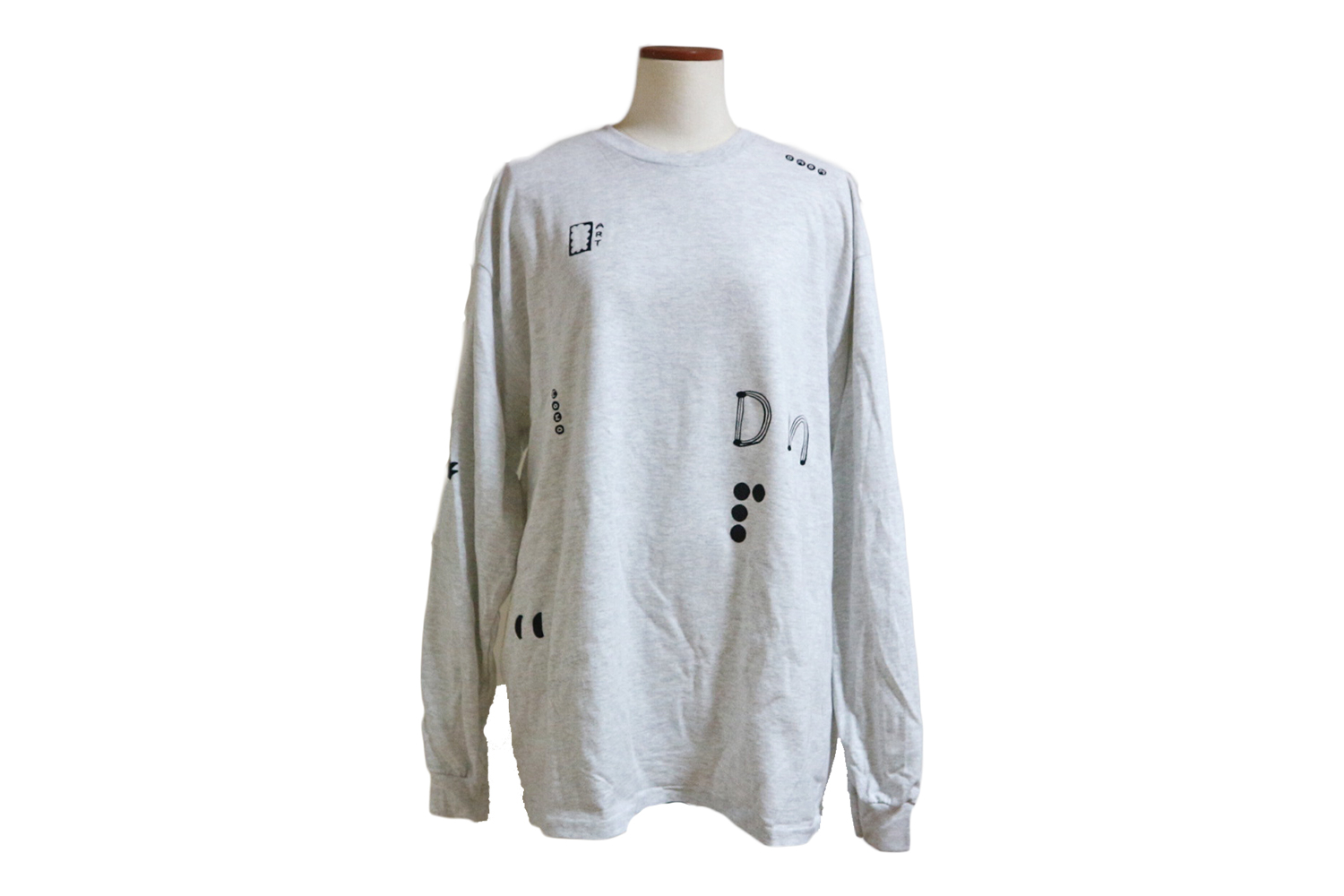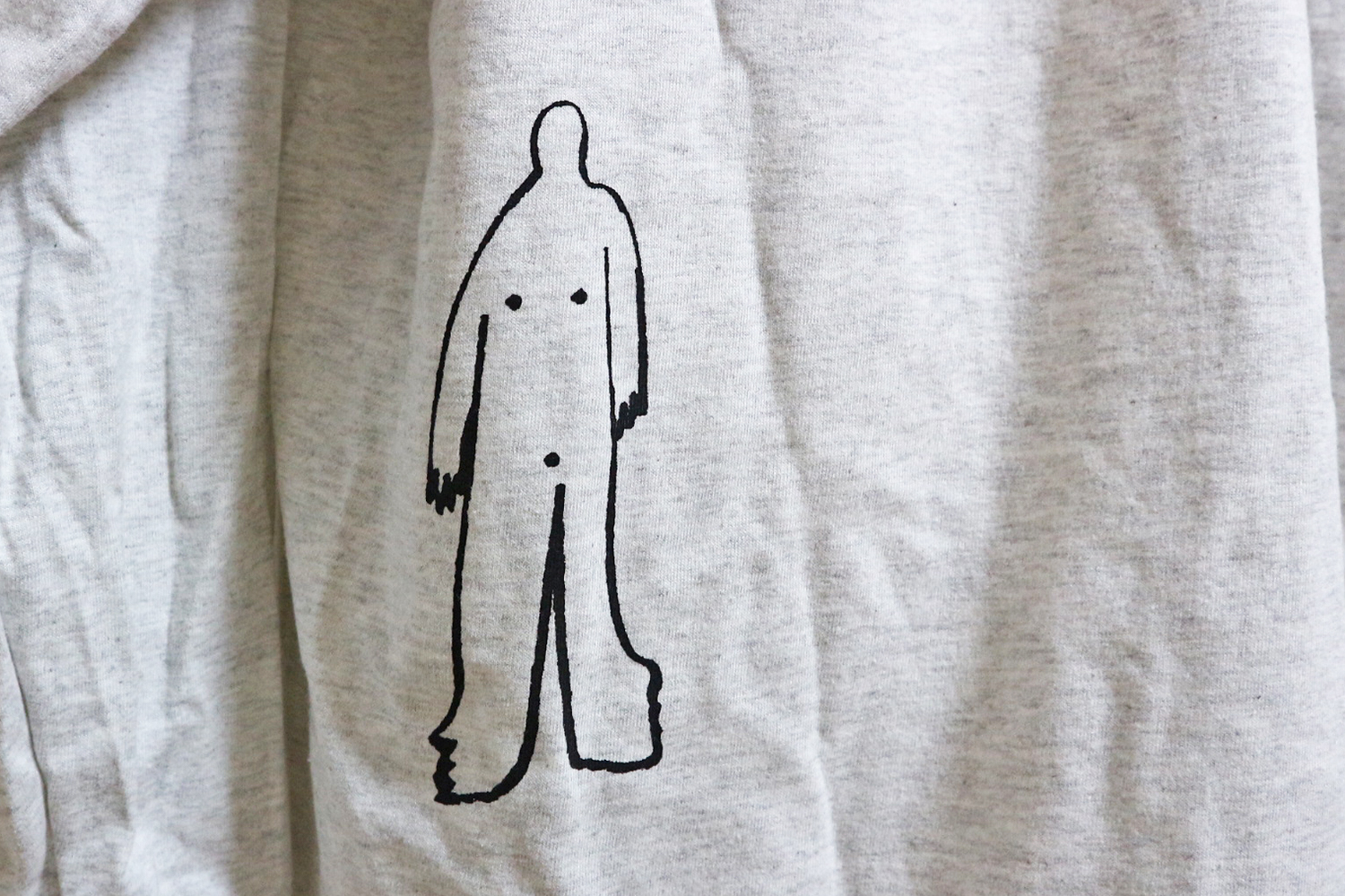 1着は買うとして、まずこれは、と手に取ったのがこのTシャツ。ライトグレーのボディーに、オリジナルの小さなグラフィックがあちこちに散りばめられたデザイン。