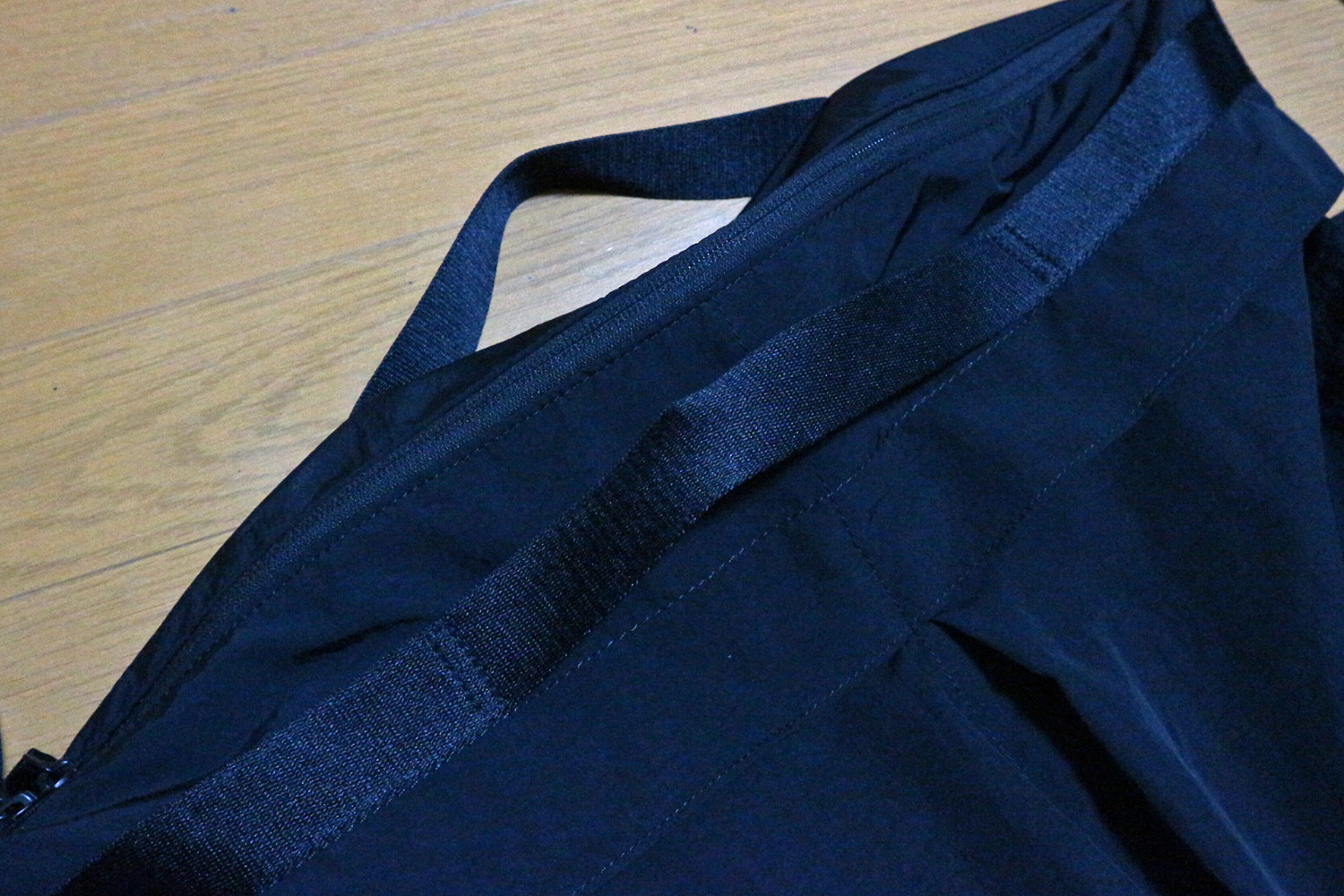 見た目の通り、生地表面はツヤッとしたナイロン生地。軽く撥水してくれるのも便利なところ。